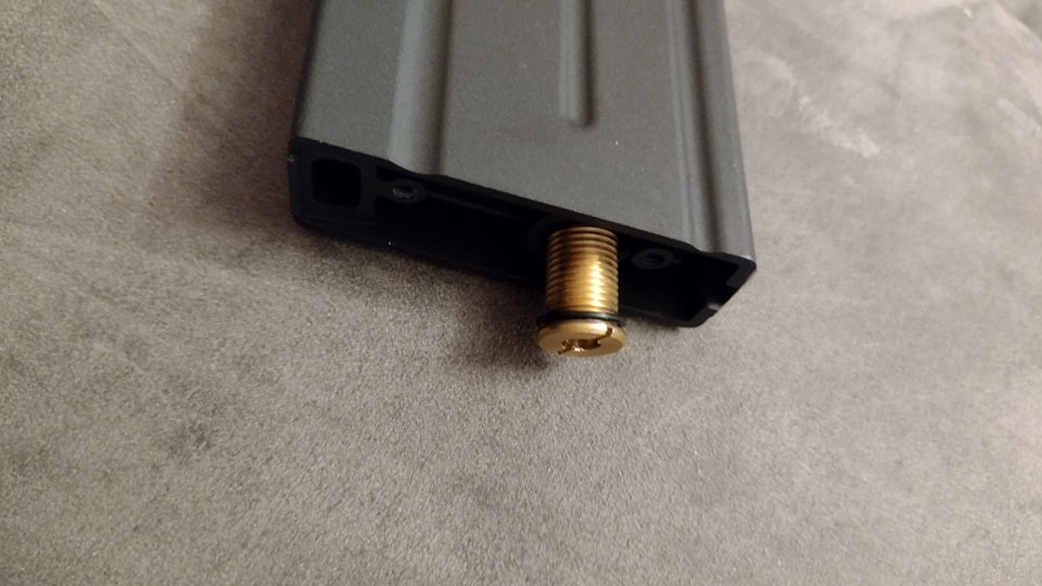 The new trigger is also comfortably shaped together with the new charging handle. The bolt catch is different from the previous version, being larger and more comfortable. I also like the new fire selector and bolt release button. The trigger group did not change that much, but there is a significant difference in the fitment of the parts. It became much more crisp. The bolt catch piece is still a separate plate, I think it deforms rather quickly, and the same goes for the inner end of the bolt carrier (behind the firing pin imitation). The moving parts of the bolt carrier received much stronger springs and the nozzle spring now has an incorporated rubber band to prevent it from getting stuck. The handguard is mounted in place using a bunch of parts, mainly screws in every place around, this way it is rock solid. The notch at the end of the outer barrel is a little bit too wide, and therefore the hop up chamber has a chance to rotate in it. It is recommended to pay extra attention to this detail when assembling the replica. If you see that the BBs hop to one side, the reason is most likely a tilted chamber. The inner barrel has good quality, but it does not go all the way to the end of the outer barrel. The factory hop up bucking is slim and soft, it is unable to hop heavy BBs and the hop up nub is not helping either. The Poseidon bucking was too much for the MTR-16, but with the Modify X-Range 55/65 buckings, it shoots ridiculously good. I did not like the short 20 BB magazines. It is true that they are small, compact and light, but their gas capacity and BB capacity is seriously limited. Moreover, this type of magazine performed even worse with strong gases (and in Japanese designs like this, even regular green gas is considered strong). Just like in other Marui magazines, the sealing O-ring is missing from the gas inlet valve, so it is impossible to fill enough gas into the mag.