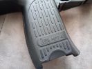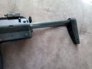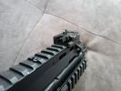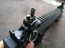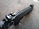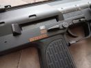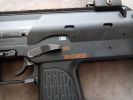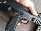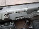 The controls are also very unusual. At first, I had the feeling as if a USP had overdosed on steroids. Identical to said pistol is the magazine release, which is rather unpleasant to use in combat. One advantage to this solution is that it is certainly a fully ambidextrous magazine release, but everything else is a disadvantage. You almost certainly have to switch grips to push it, but it holds the magazine steady and you can feel it holding the magazine. The fire selector is huge and located on a prominent spot. The left side of the frame/receiver also wraps around it a bit (it fits into a separate arc, putting the safe position in a slightly more protected place). It is definitely easy to switch between firing modes, you can feel some difference between the different positions. I would expect a crisper feel here. The bolt catch is located above the trigger. It's in a very good place for use, easy to find and it is easy to pull downwards after inserting a new magazine. The charging handle is located at the back of the receiver, on top. It has to be squeezed slightly and then it can be pulled back. When disassembling, it can be a pain to get it in the right place. During usage, it has a small chance to be broken, but in order to achiece this, you kind of have to deliberately do it. Usually, someone encounters a problem with it, then it is because it was not put back in its intended place after re-assembly. At the end of the receiver, there are two more latches which belong to the stock. The latch on the left has to be pulled down to remove the stock completely, while the latch on the right is there to adjust the length of the stock. To be honest, this is a terrible solution, seems like a forced design. You have to change your grip to adjust it. The stock part itself is stable and doesn't feel like it's about to break or fall apart. The stock bar itself is quite flimsy, weakened and only widened at the adjustment spots. Unfortunately, it will wear out around these adjustment spots over time. By the way, the stock received a rubber coating, which does not last long, it peels off very quickly - also, the colour of this part is very different from the colour of the gun.