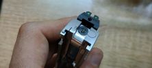 A beépítés során nekem egy GunSmith Bros szánba kellett szerelnem, amelybe a CowCow új dugattyúházát szereltem be - B02-es verziót, ami hagyományos dugattyúfejes és nem ventillált verzió. Illesztési hibával nem találkoztam, viszont a tesztek során meglepetésbe ütköztem. Nagyjából 60 lövés után a betét gyönyörűen kipattant a helyéről, vagyis az NS nem rögíztette semmilyen módon - ami eléggé nagy hiba a részükről. Szerencsére a kiesett darabot gyorsan megtaláltam, ráadásul a kakasvédőhöz adnak csere darabot is. Minden esetre erre a részletre jobb, ha ti is figyeltek, nehogy kellemetlen meglepetés érjen. Miután zselés pillanatragasztóval rögzítettem, tudomásom szerint sokáig a helyén maradt az említett karika.