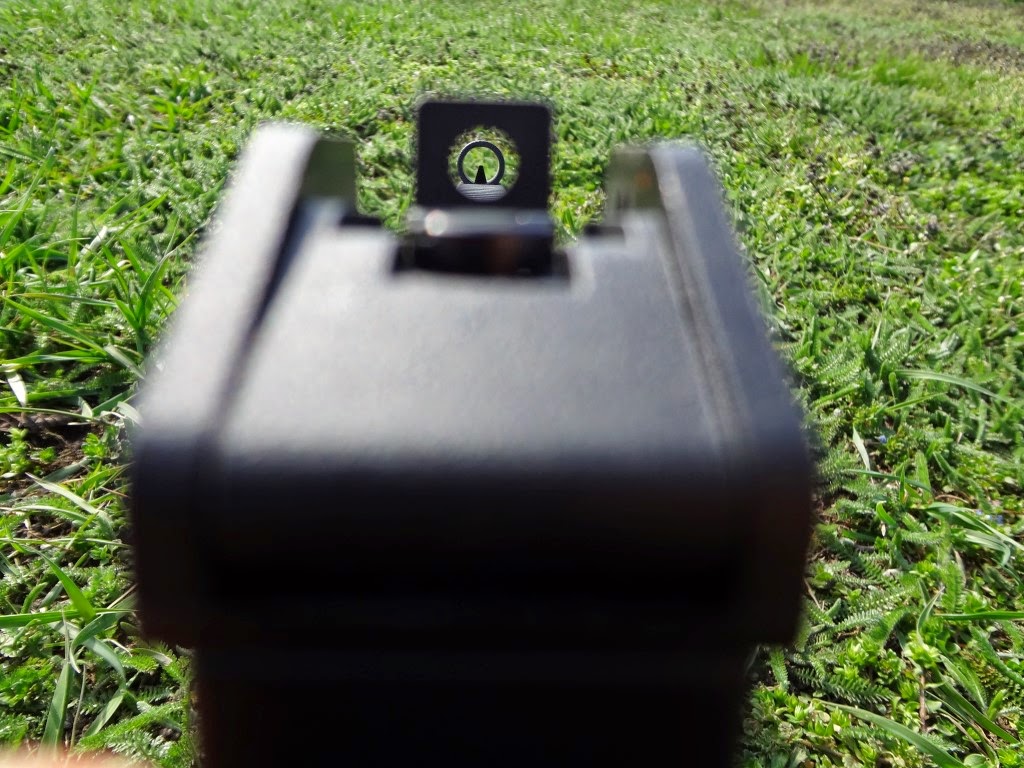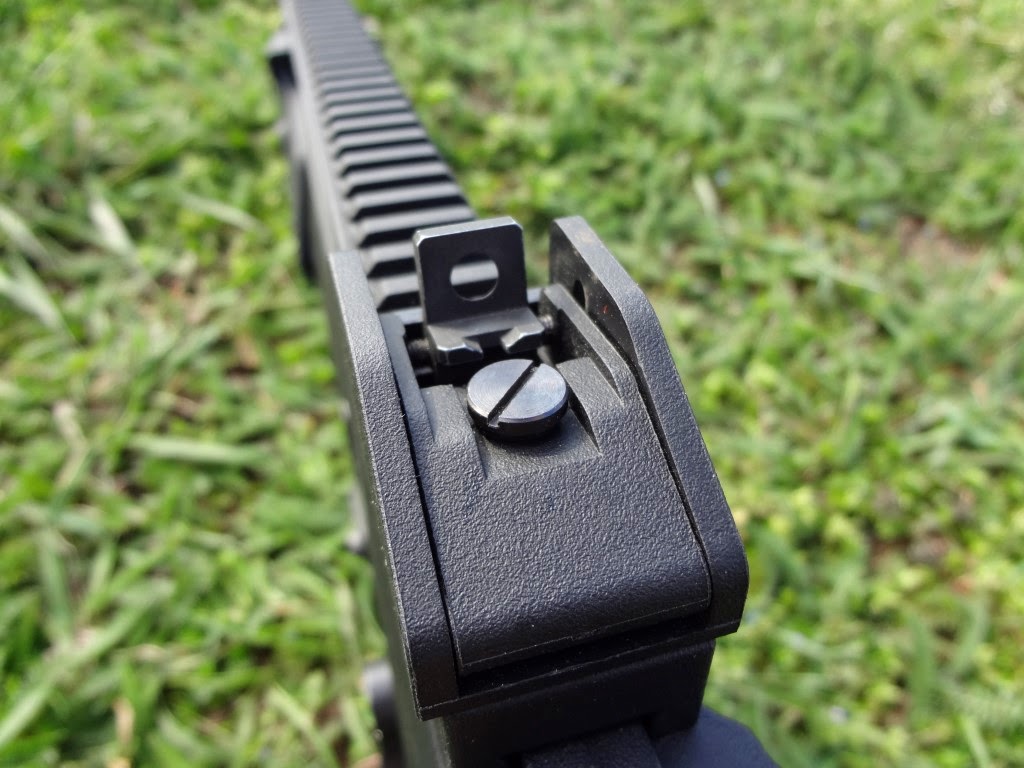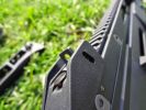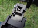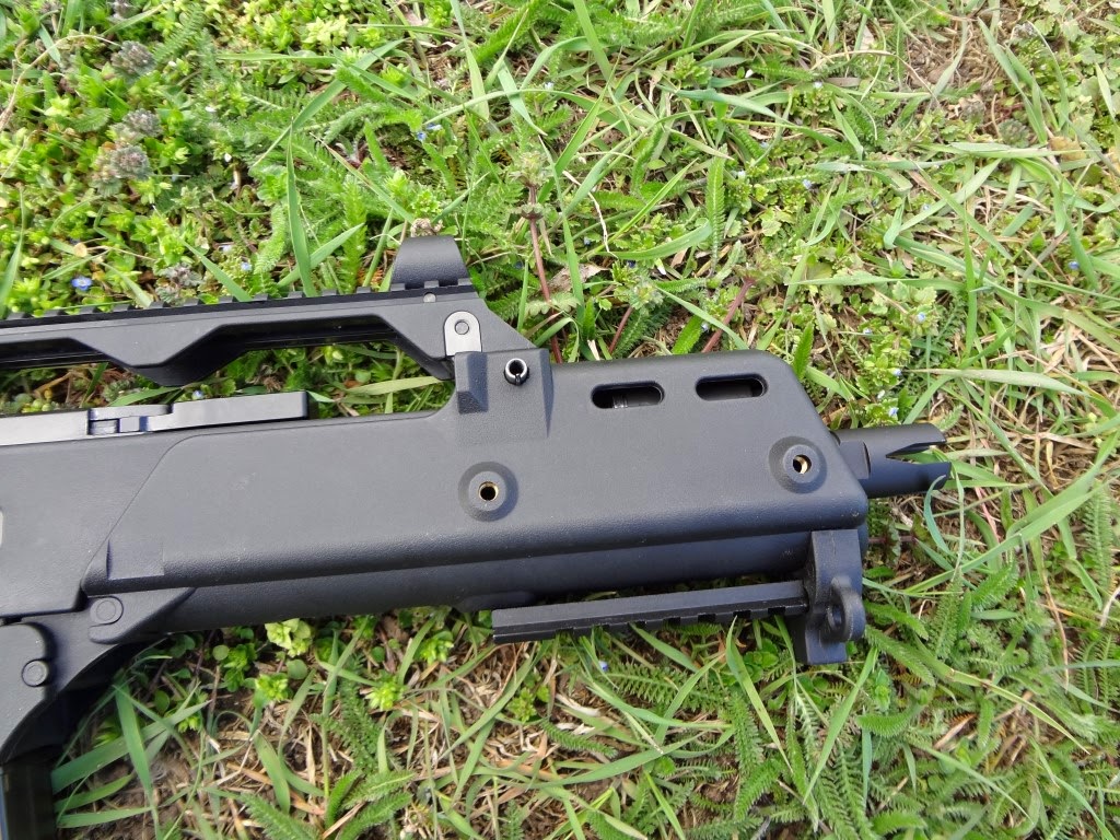Külön megjegyzés, hogy az AEG-eken használtható integrált optikás hordfogantyú feltehető, de nem ajánlom. A betekintési szöge, az optika nagyítása nagyjából kényszerirányzék jellegű, sok haszna nincsen - csak nehezíti a használatot. Azok a típusok, amelyeken van red-dot, szintén botrány minőségűek sajnos. Viszont a G36 standard irányzéka zseniális, szerintem a mai napig az egyik legjobb irányzék pár amelyet fegyverre alkottak. Jól látható, jól rendezhető irányzékok kapás/reflex-lövések leadására kifejezetten alkalmasak. Az első irányzék fix, viszont a hátsó teljes mértékben állítható. Ráadásul a hátsó nézőke is jó variálható a különböző nézetek közötti billentéssel - pisztoly-style és diopteres nézet között. A dioteres nézet, amelyben kört körhöz rendezel, marha kényelmes jól eltalált - ezt nem lehet elégszer hangsúlyozni. Ha ez nem elég számodra, hatalmas és jól elhelyezett szereléksín áll rendelkezésre szinte bármilyen optika felszerelésére.