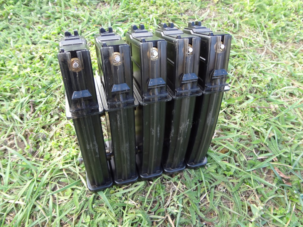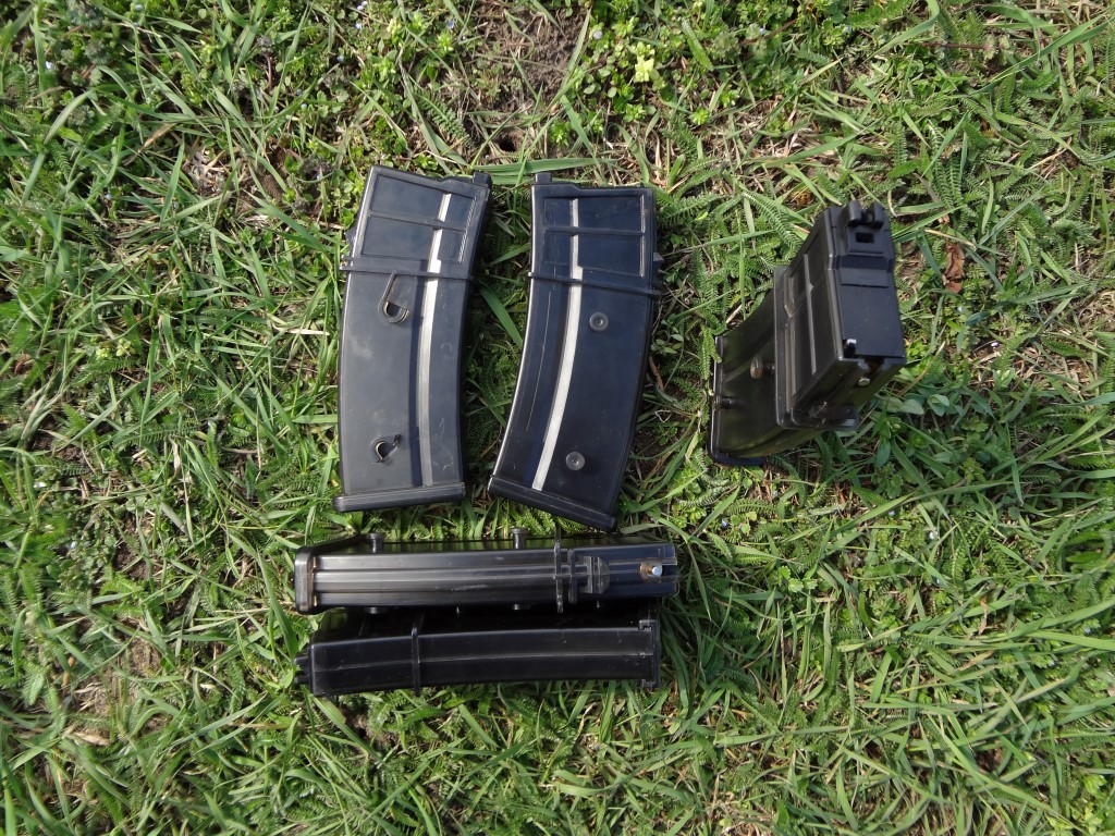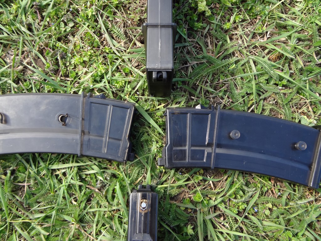 A tárak egy másik lényeges része a rendszernek. Hatalmas méretű tárak nem feltétlenül indokoltak, sajnos ez a tárköpeny kapcsolható mivolta miatt van. Habár a gáztartály is némileg nagyobb, háromrészes kialakítású, ez inkább hátrány a harctéren. Az összekapcsolhatóságot csak rutinosabbak használják ki, főleg CQB-környezetben. Ez a funkció pedig a lövések számának begyakorlása után rögtön teljesen felesleges lesz, maximum az extrém gyors tárazási idő indokolja a további meglétét. Cserébe a tárköpeny mindenbe beleakad. Nagyon nem mindegy milyen zsebet használsz hozzá és a tárdobóba is erősen rendezgetni kellhet a tárakat. A műanyag előggé rugalmas, plexiszerű anyag, leejtéskor azonnal elreped - de legtöbbször csak a tárfenék jár így. Néha a sok használat után a gáztartályt egyben tartó csavar meglazul, ezzel ideiglenes eresztést okozva. Maga a tár ezeket leszámítva zseniálisak. A tárak viszonylag könnyen tárazhatóak BB-vel és gázt is nagy mennyiségben és takarékosan használják fel. Igazából a mai korban már a tárköpeny is könnyen javítható 3D nyomtatással, számos terv alapján lehet ezt a részletet is javítani.