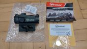 Maga a dot egy méretes kartondobozban érkezett. A doboz grafikája korrekt, semmilyen különlegeset nem tudok megjegyezni vele kapcsolatban. A dobozban korrekt beltartalmat kapunk, mint minőséget igazoló papírkát, törlőkendőt és elemet is - azon túl, hogy a dotban is volt egy. Maga a dot 1x22-es betekintésű, parallax lencsés piros-zöld pöttyös kompakt dot két lencsevédővel.