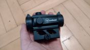 Megkezdtem a keresgélést, amely során pár red-dot kipróbálása utána a következő szempontokat vettem figyelembe. Kicsi, kompakt dotot kerestem magasított szerelékkel. A magasított szerelék alatt látnom kell a nyíltirányzékot, mert a red-dotot kényszerirányzékként akartam használni - vagyis a nyíltirányzék továbbra is elsődleges, épületben és párásodás esetén váltok a dotra. A dotnak nem kell belépőszintűnek lennie, de természetesen legyen jó ár/érték arányú. Az sem baj, ha éles fegyverre szerelhető. Ezen számos követelmény után találtam rá az FireField Impulse nevezetű red-dotjára, amelyet hazai boltban (AirsoftGuru) meg is tudtam tekinteni. A dot korrekt árcímkével érkezett, a gyártó kifejezetten éles fegyverekre gyártja, emiatt airsoftra is kiválóan alkalmas lesz.