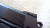 Az SRC 1911 leginkább a WE-hez lehet hasonlítani. Méretei és tárja erősen hasonló ahhoz, talán még kompatibilisek is egymással. Festése elmegy, nagyban tükrözi az árát, hiszen 20k Ft alatt ne várjunk csodát. Félfényes, korrekt felület található bárhol, amelyről a festék gyorsan kopik. Feliratok sehol, amely talán a markolat puritán megjelenésében ütközik vissza - hiányzó logók és feliratok rontanak az összképen.