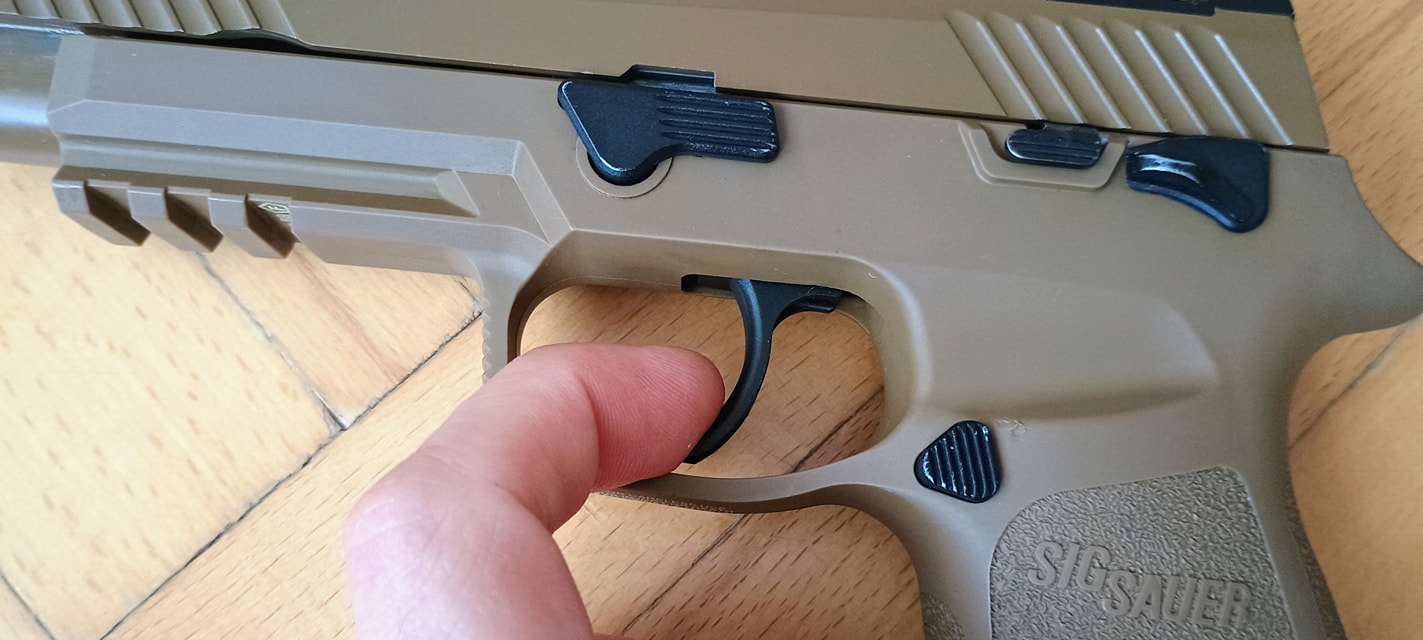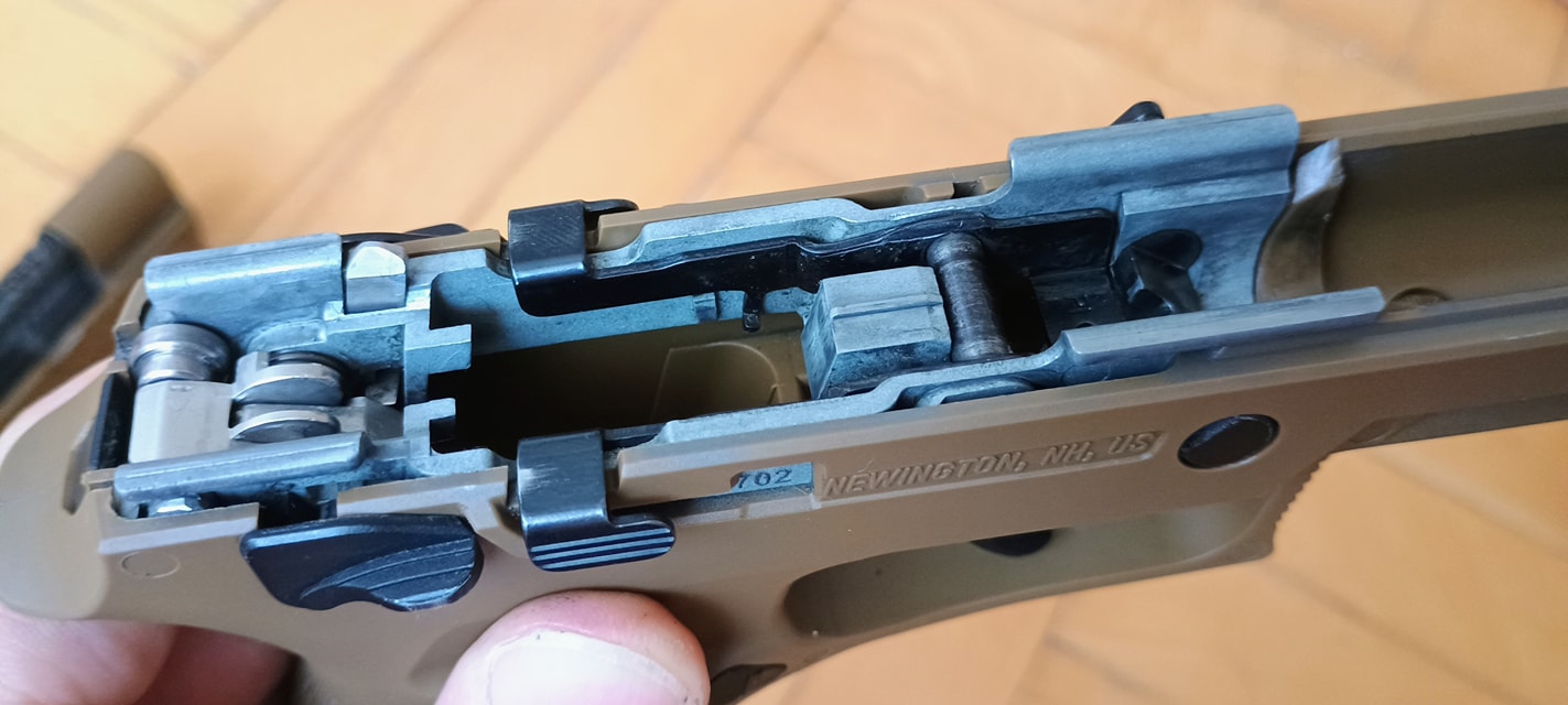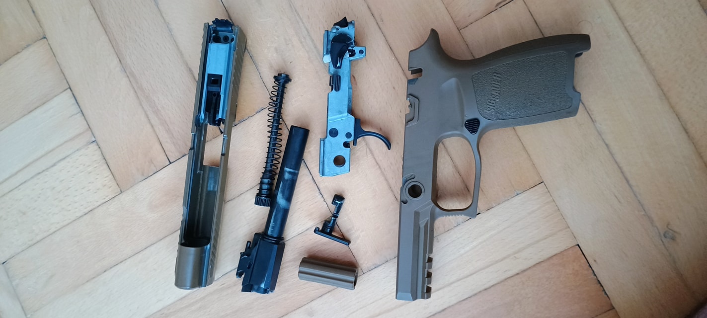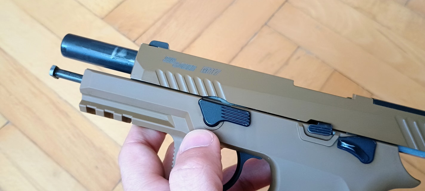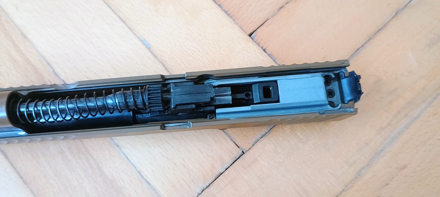 Maga az elsütőszett egyszerű, méretes és jól kinéző alkatrészekből áll. Távolról nézve nekem a Marui M&P9-et juttatja eszembe, érzésre ezeket lettek "P320-asítva". Az alkatrészek fényes, csúszós felülettel lettek kialakítva, ami egy jó pont. Így kenés hiánya és a túlkenés esete is inkább elviselhetően hat az elsütőre. Tehát kapunk egy klasszikus, kakasos és szelep-reteszeléses elsütő szettet. Spoiler, ami közel sem tökéletes.