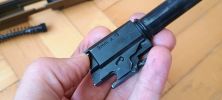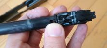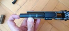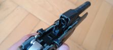 Az első lényeges gondom vele, hogy a kakason lévő csapágy, ahogy van el van rontva. A csapágy méretes, kétlépcső található benne. Tengelye a kakasban nem fordul el tökéletesen, rendszeresen beakad és nem fordul el rendesen. Ez a szán felhúzásának erejét növeli és jelentős extra terhelést ad a pisztoly számára. Csapágy persze vehető ide is, ami rendszerint egy SKF csapágy egy réztávtartóval és egy csappal. Meglepő, hogy a kakas kívülről jól látható amikor fel van húzva. A rajta lévő csapágy ekkor szinte kilóg a szánból és a tokból.