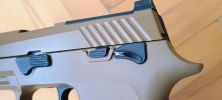 A pisztoly kialakítása és ergonómiája kétségen kívül a SigSauer sajátja. Érződik hogy a pisztoly hadi felhasználásra vagy szolgálati pisztolynak tervezték és bizony a Sig elvégezte az elvárások teljesítését is - nem, mint a Glock a 19X-szel. Egy modern pisztollyal szemben támasztott minden aktuális opciót és igényt teljesít a pisztoly, vagy legalábbis kompromisszumokkal együttesen teljesít.