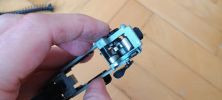 Érdemes a fotókon ránézni a nózira, hogy a nyaka milyen módon el van verve a helytelen pozíció miatt, ami a rázkódás miatt BBU-val együttesen el tud mozdulni a szánban. Ez szerintem vicc kategória, főleg ilyen áron - igazából mostanra a sokadik. Egyébként hátul két csavar rögzíti a BBU-t, míg elől található egy újabb csavar amely a hüvelyvonót tartja a helyén.