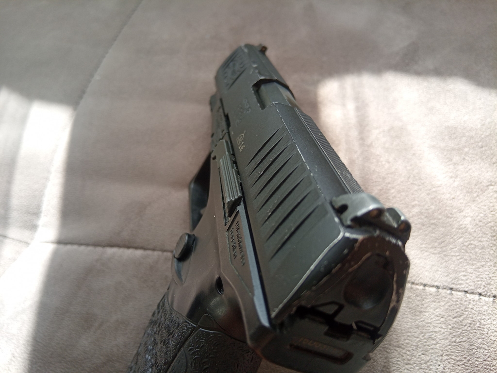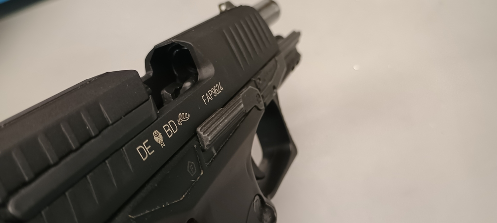 Az első kézbenvétel során megállapítottam, hogy a pisztoly nagyon kis masszív és egyben van érzést adja. Igazán jó arányokkal rendelkezik, hiszen kellően kompakt, forma világa pedig nagyon modern. Maga a pisztoly borzasztóan kompakt és hihetetlen módon kényelmes. Még akkor milyen kényelmes lenne, hogyha a kiegészítő markolatpanelek is meglennének, így 100% kézhez lehetne igazítani. Látványos, hogy német pisztolyról van szó - forma világ egyértelműen német jegyeket kapott -, illetve látványos a kötődés az elődmodellnek tekinthető P99-hez is.