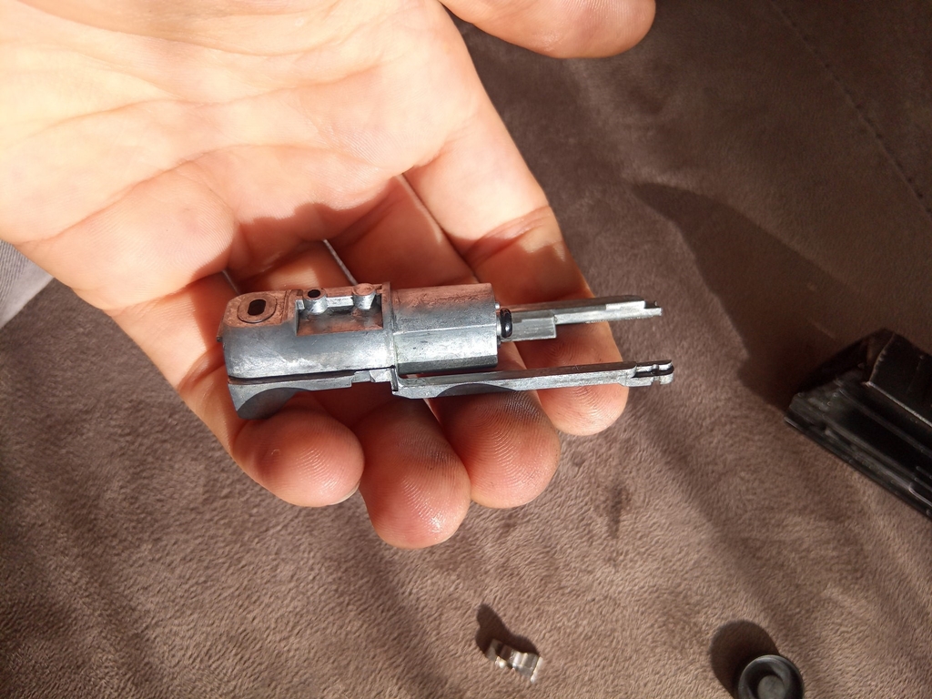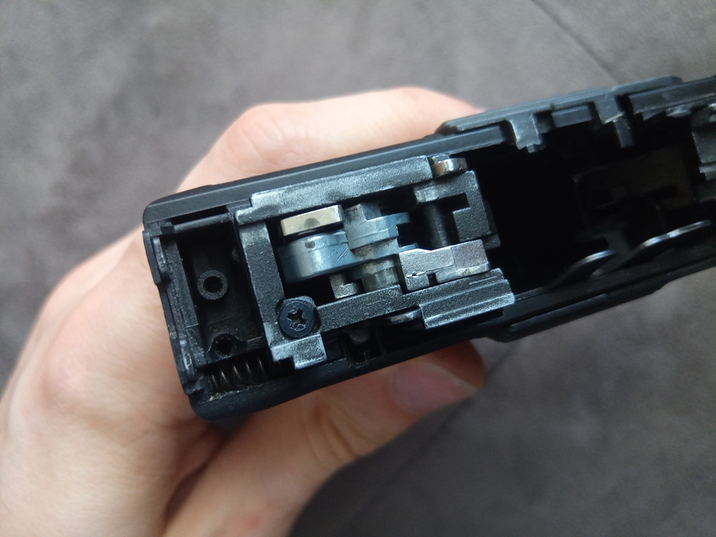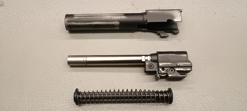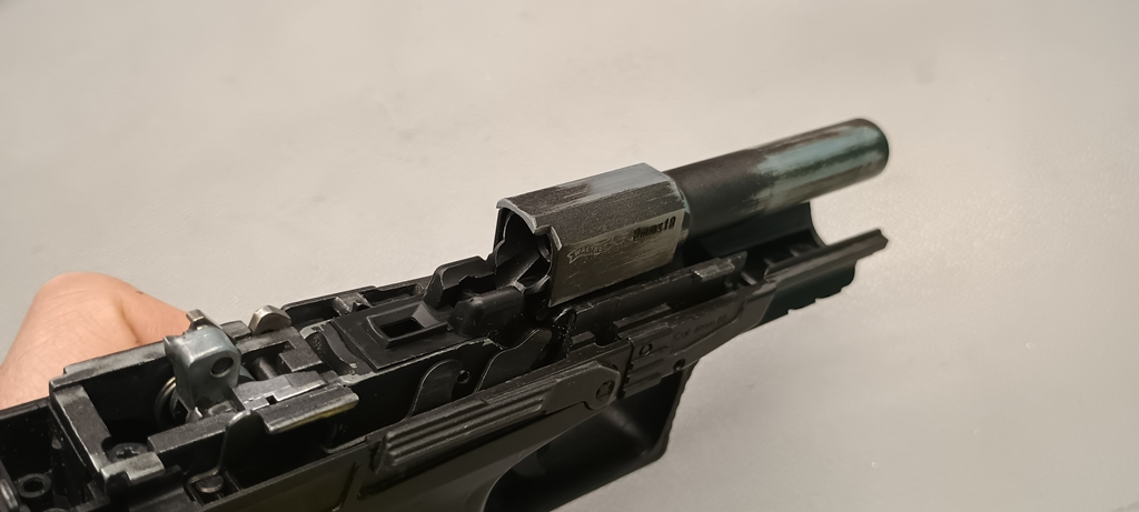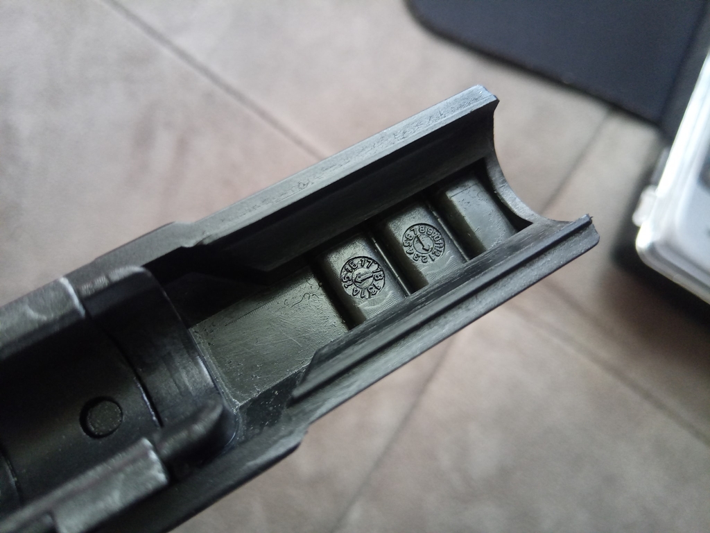 Kapunk egy műanyag rugóvezetőt, kissé gyenge rugóval és fura/idegesítő hopup kamra illesztéssel. A rugóvezető vége nyitott, üreges és egy kockaszerű bemarás található meg rajta. A hop kamrán szintén megvan ennek az ellendarabja, itt kell a két alkatrészt egymásba illeszteni. Ami jó, hogy összeszerelés során ez az illesztés várhatóan szét fog ugrani, így már részlegesen vagy teljesen összeszerelt pisztolynál kell vele vesződni - rossz esetben szorulni és feszülni fog.