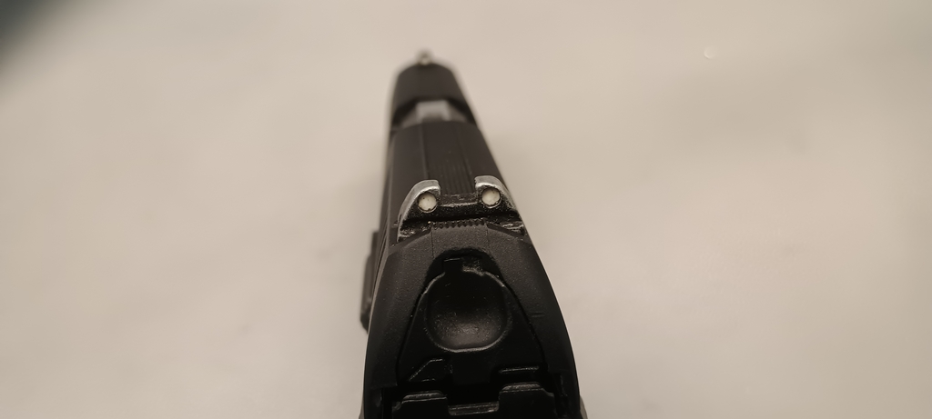 A festés színe nagyon szép, a festett felület tiszta és egyenletes. Nagyon sajnáltam, hogy a festés tartóssága kritikán aluli. Gyorsan lepattog a festés, a táron különösen és a szánon lévő festés is gyosan kopik - holster pár játék után telibe koptatta, mintha több éves lenne a pisztoly.
