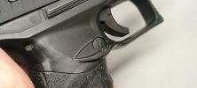 Mint említettem, a pisztoly nagyon kényelmes. A tokozáson lévő textúrázás jól sikerült, ténylegesen segíti a fogást és érezhető a tapintása ezeknek. Maga a textúrázás itt nem csak látvány elem, amely sok pisztoly eseténben szinte unalmas, snassz és kizárólag funkcionális. Ráadásul a marok ergonómiáját utánozva alkották meg a markolatot, így az élén és a markolat oldalán is vannak hullámos kiemelkedések vagy éppen beszívódások. Érdemes ezeket a részleteket megnézni és megtapasztalni is.