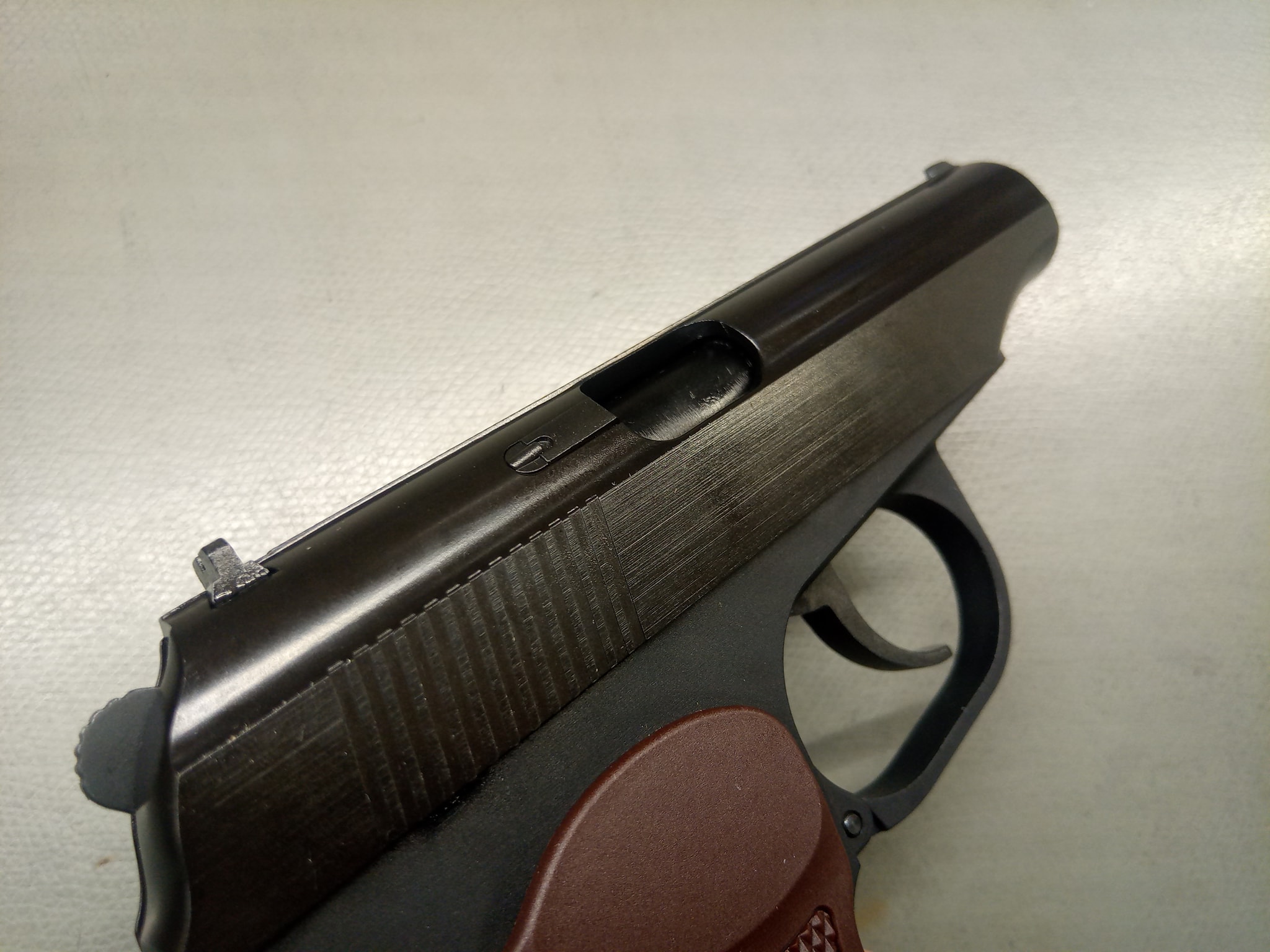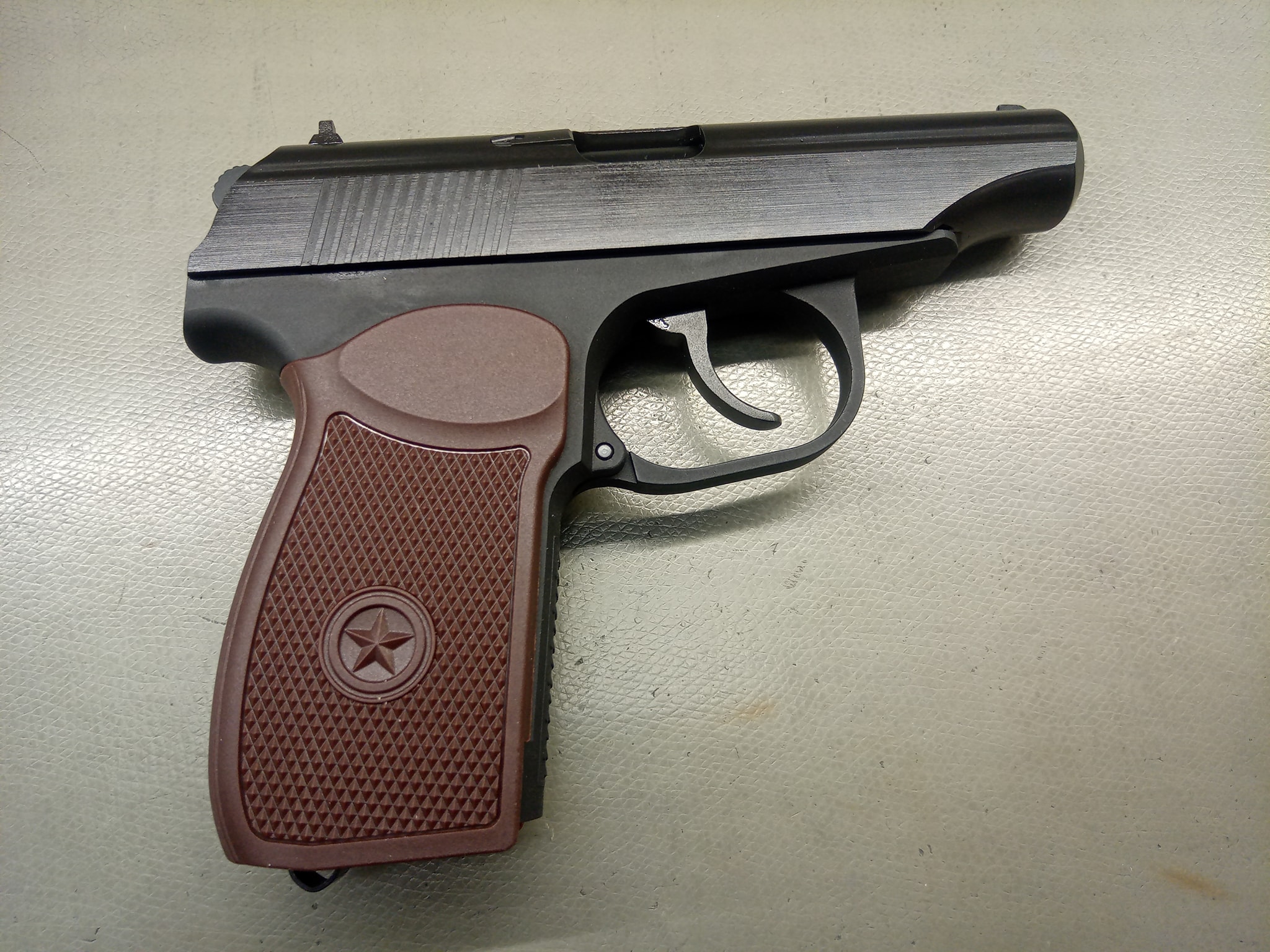 A PM piros színű, csilag motívummal ellátott markolatot kapott, míg a PMM a modernebb/szélesebb/ergonómikusabb fekete markolatpanelt kapta. Éles/eredeti markolatpanel módosítással felszerelhető a WE Makarovokra, erre vonatkozóan a neten van pár "hogyan" videó vagy leírás. A mi esetünkben a PM éles markolatpanelt kapott, míg a PMM esetén hagytuk a gyári markolatpanelt - mivel nagyon kényelmes és jól használható.