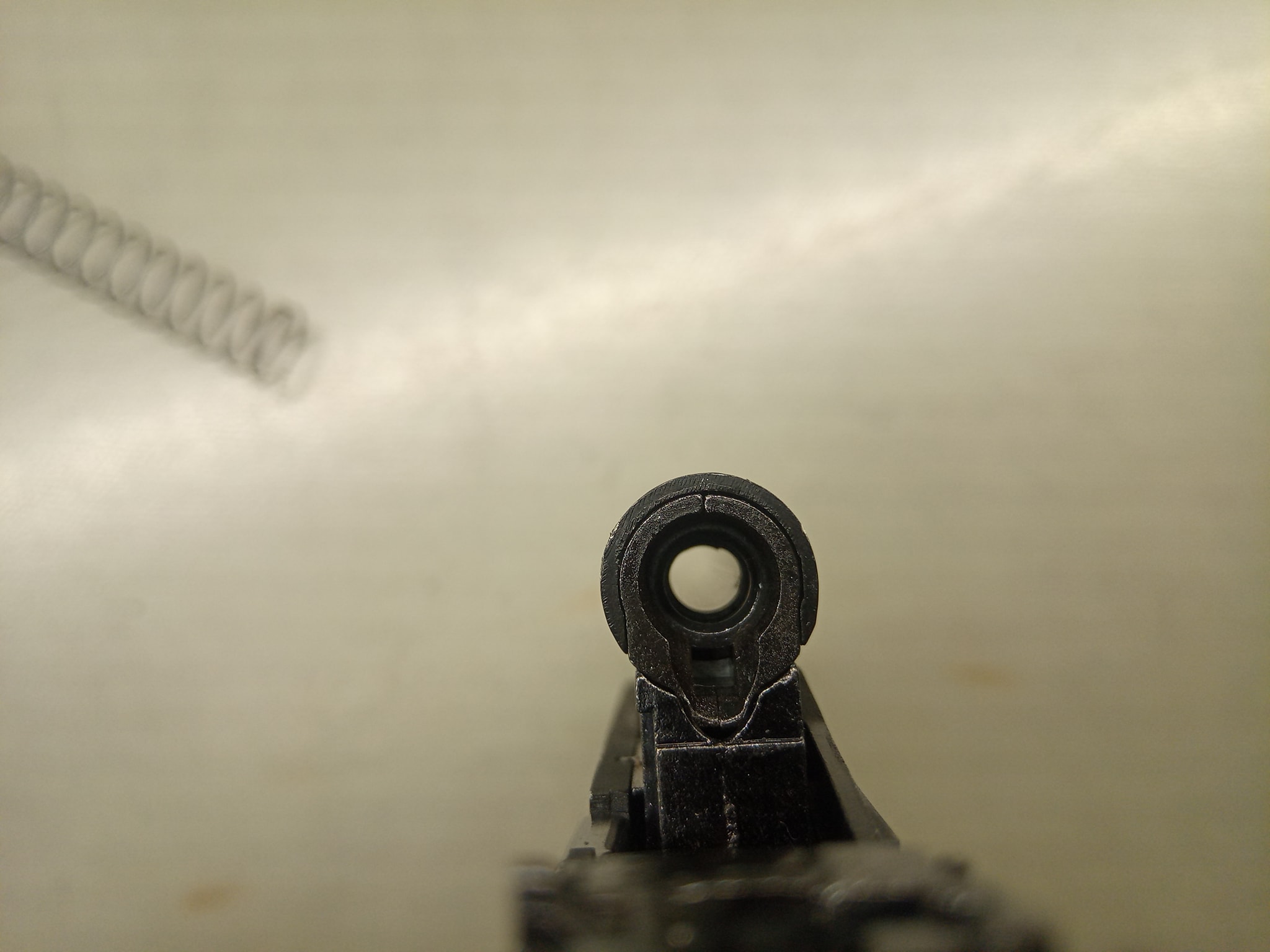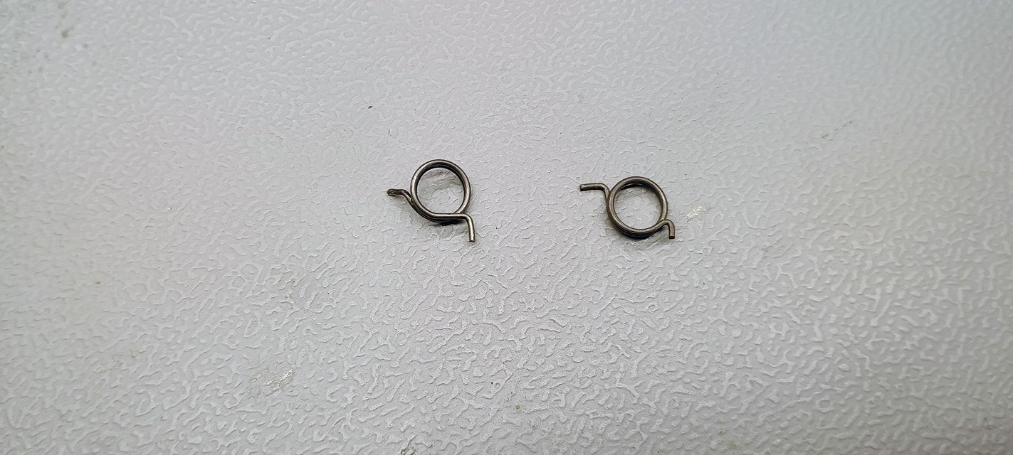 Sajnos ezzel nincsen vége, a kakasrugóval is komoly gondok vannak. A legnagyobb gond, hogy maga a rugó rendkívül kicsi és ettől függetlenül erős huzalból készült. A visszahajlítások nagyon sarkosak, határozottak. Ennek köszönhető, hogy a PMM-en pár tár ellövése után eltört a kakasrugó. Mivel nagyjából egy Glock rugó átmérőjéhez képest fele a Makarové, csak rendeléssel lehet csere alkatrészt szerezni. Új fül hajlítása sem lehetséges, mert nincs elegendő hely a rugó számár - ahogy a képen látható a bal oldali próbálkozásom során.