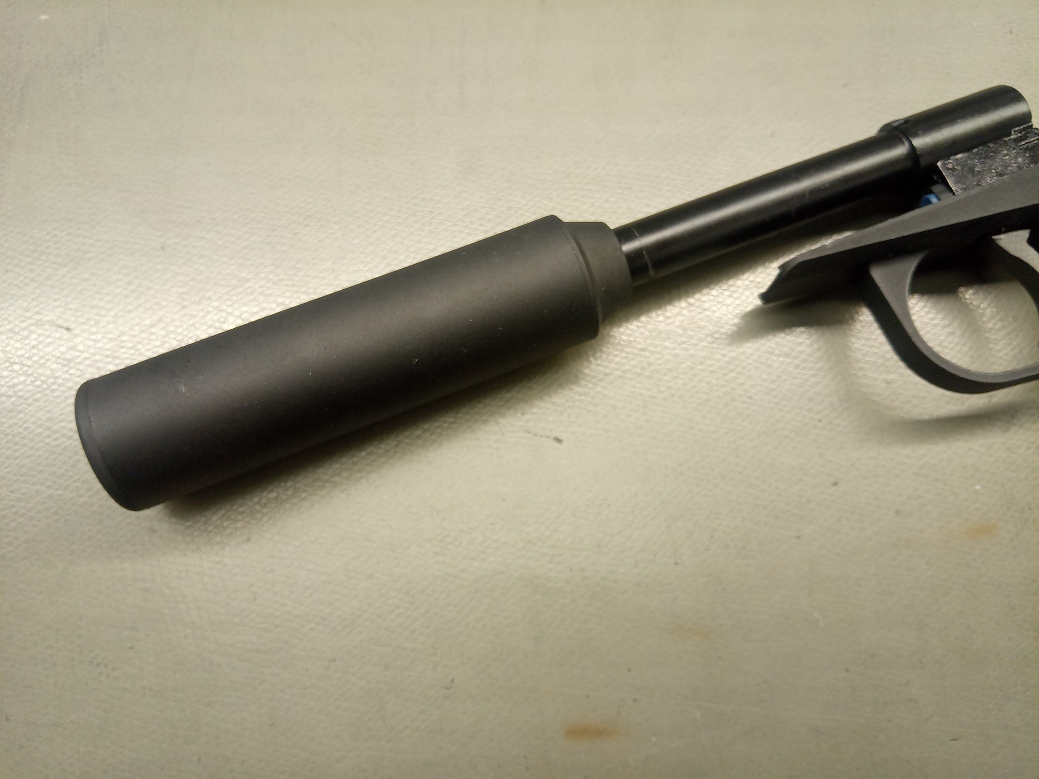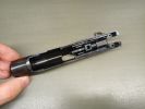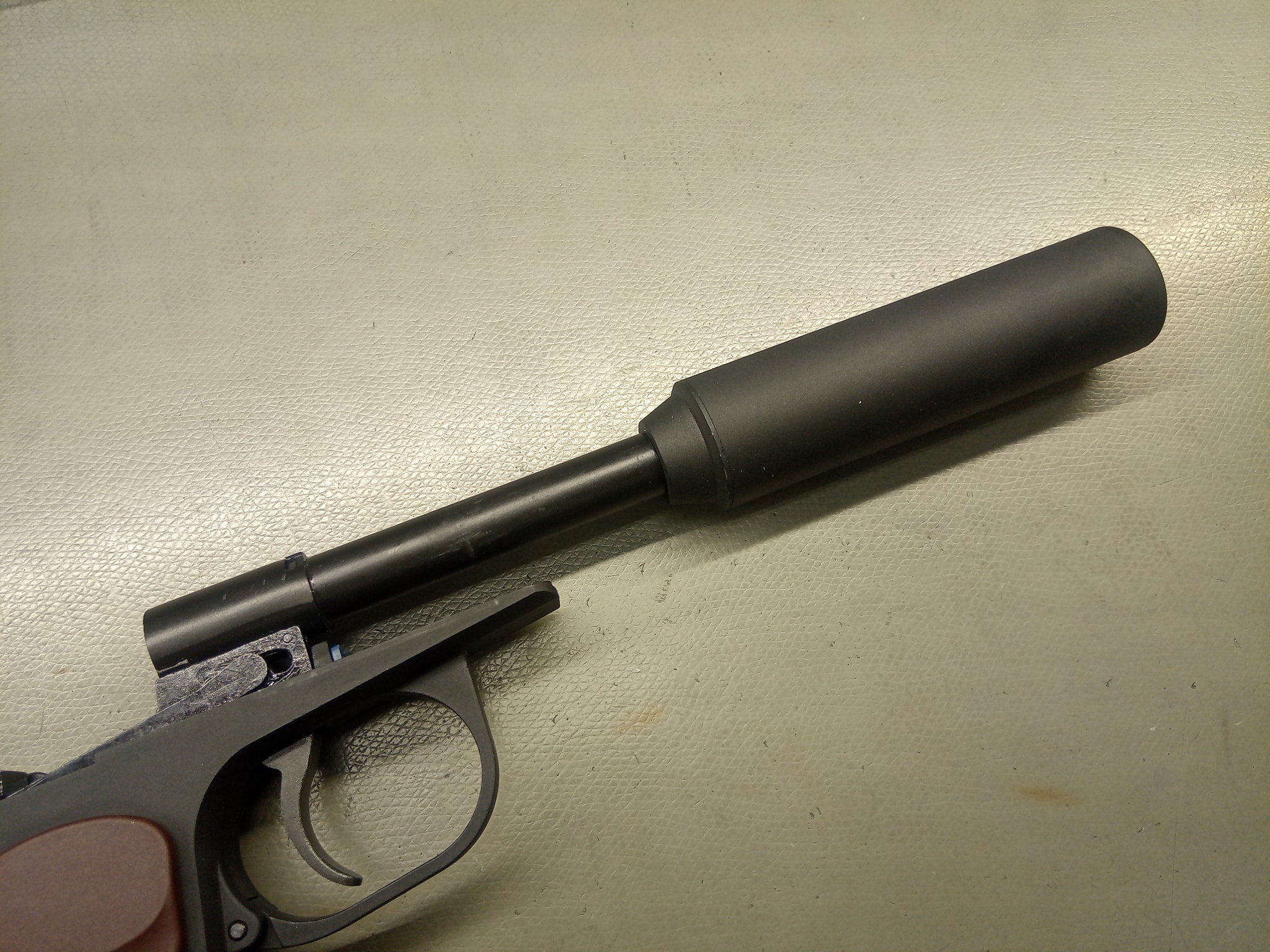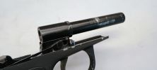 A WE tett egy bátor lépést és nem csak sima hangtompítót tett a pisztolyba. A pisztolyban lévő belső csövet menetesre végűre gyártották le és ehhez mellékeltek egy szintén menetes toldatot. A két belső cső összetekerhető a menet segítségével, így a pisztoly ereje drasztikusan növelehető, de a sajnos a menetek lépcsős kapcsolódása miatt nem igazán tudom ajánlani ezt a megoldást. Működik, de a belső cső toldásával nem lesz sokkal jobb az eredmény mint ennélkül. Egyébként a hangtompító sem egy nagy eresztés, sima alumínium henger szivaccsal tömve - viszont rendkívül sokat ad a látványhoz.