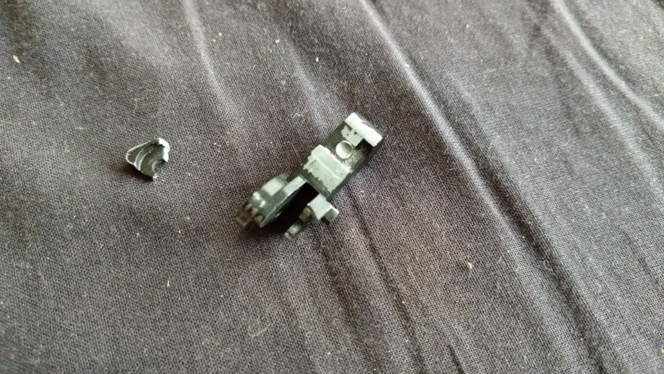 A kakas esetén alapvetően is probléma, hogy az ütőszeg-imitáció is ráfeszít. Pár lövés után megtalálható a deformáció nyoma a kakason, ami szintén eléggé bosszantó. Szerintem az elsütőház csavarok túlhúzása és az ütőszeg-imitáció közösen törték el a kakast. Érdekes módon az új kakas formára is jelentősen eltér, hiszen kihagytak belőle anyagot amellyel az ütőszeg-imitációval történő ütközést próbálták javítani.