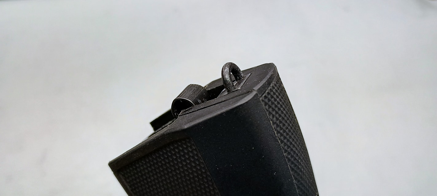 A PMM-en ugyanitt található az akasztószem, amelyre biztosítókötelet vagy huzalt tudunk tenni. Nekem ez a spiáter alkatrész nem tűnt valami bizalomgerjesztőnek, nem tudom merjem-e egyáltalán haszálni. A tárkioldó nagyjából azonos magasságban van vele, így leejtéskor nem hiszem hogy törni fog, illetve a pisztoly anyaga és mérete miatt is nagyon könnyű. Ezek ellenére sem tudok bizalmat szavazni az alkatrésznek hogy használjam is.