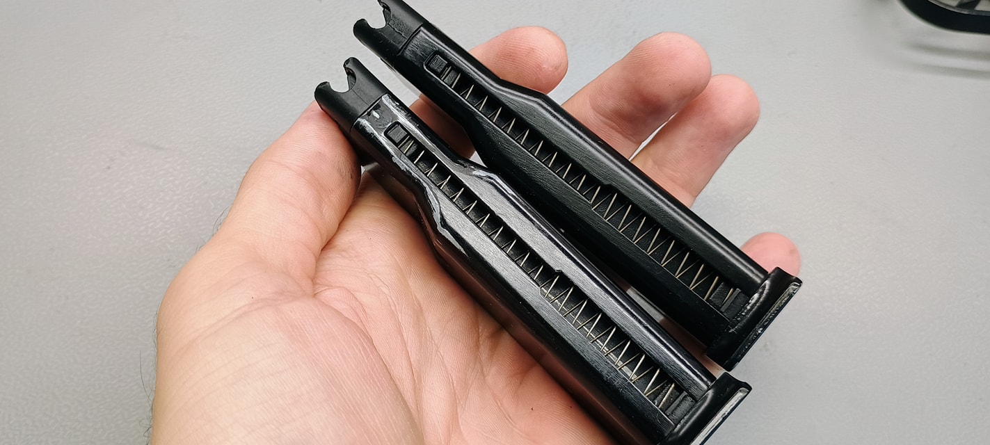 A WE esetén meg kell említeni, hogy lényegiben csupán külsőre eltérő azonos típust gyárt. A PM és PMM belseje szinte tökéletesen egyezik. További megjegyzés, hogy én eddig 3 kiadásról tudok műszaki szempontból. A pisztolyt eredetileg keresztcsappal rögzített tárral tervezték meg, amely nagyon nem volt tartós, így a hagyományos csavarral rögzített megoldásra cserélték a tárat. A másik változás egy belső alkatrészeket érintő frissítés lett, ezt a kakason lehet észrevenni - később jelezni fogom mi ez és miért került módosításra. További megjegyzés, hogy a WE kétféle kiadásban értékesíti mindkét típust. Az általános különbség, hogy kapunk-e hozzá hangtompítót vagy sem. Erről is később mesélnék a cikkben. A cikkben vegyesen fogom rövidíteni a pisztolyt, így PM/PMM/MKV rövidítésekkel fogtok találkozni, mikor melyik jut eszembe.