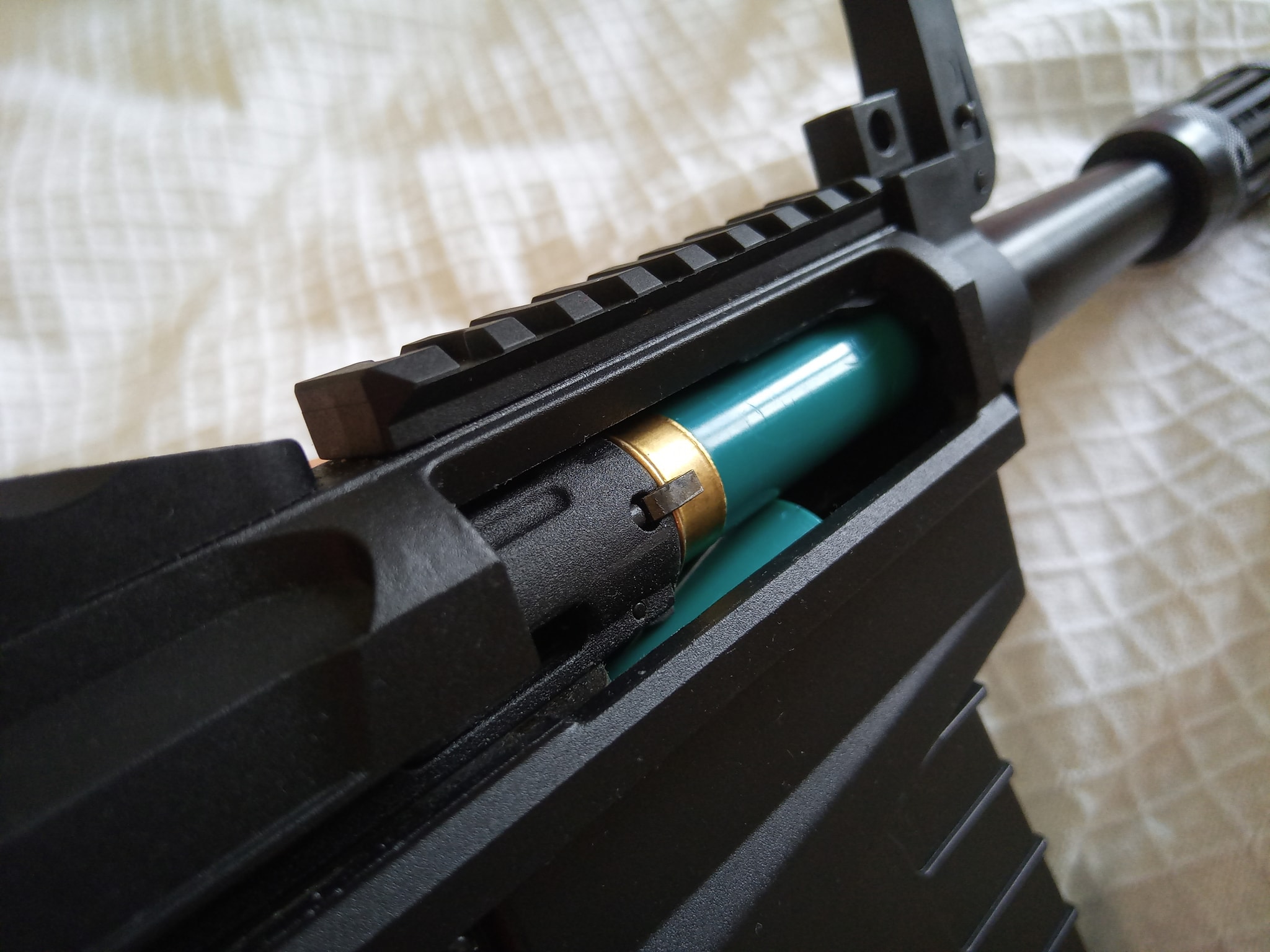 A fegyver olyan módon érkezett, hogy szilikonzsír tonnaszám volt szétkenve mindenhová. Ezt feltétlenül takarítani szükséges, mert beletapad minden kosz és szennyeződés - illetve érzésre nehezen is mozog tőle minden. A hüvelyeken nagyon stabilan tölti be és veti ki, ilyen szempontból a fegyverrel sosem volt problémám. Az idő alatti használat közben csak light-strike hibákkal találkoztam, főleg a fém hüvelyekkel és erősebb gázzal használva. A műanyag testes hüvelyek átlagos gázzal vált be legjobban, hiszen ezek esetén elég volt csak BB-vel tölteni egy gáztöltet után - simán 3-4 használattal megvoltam egy gáztöltet után.