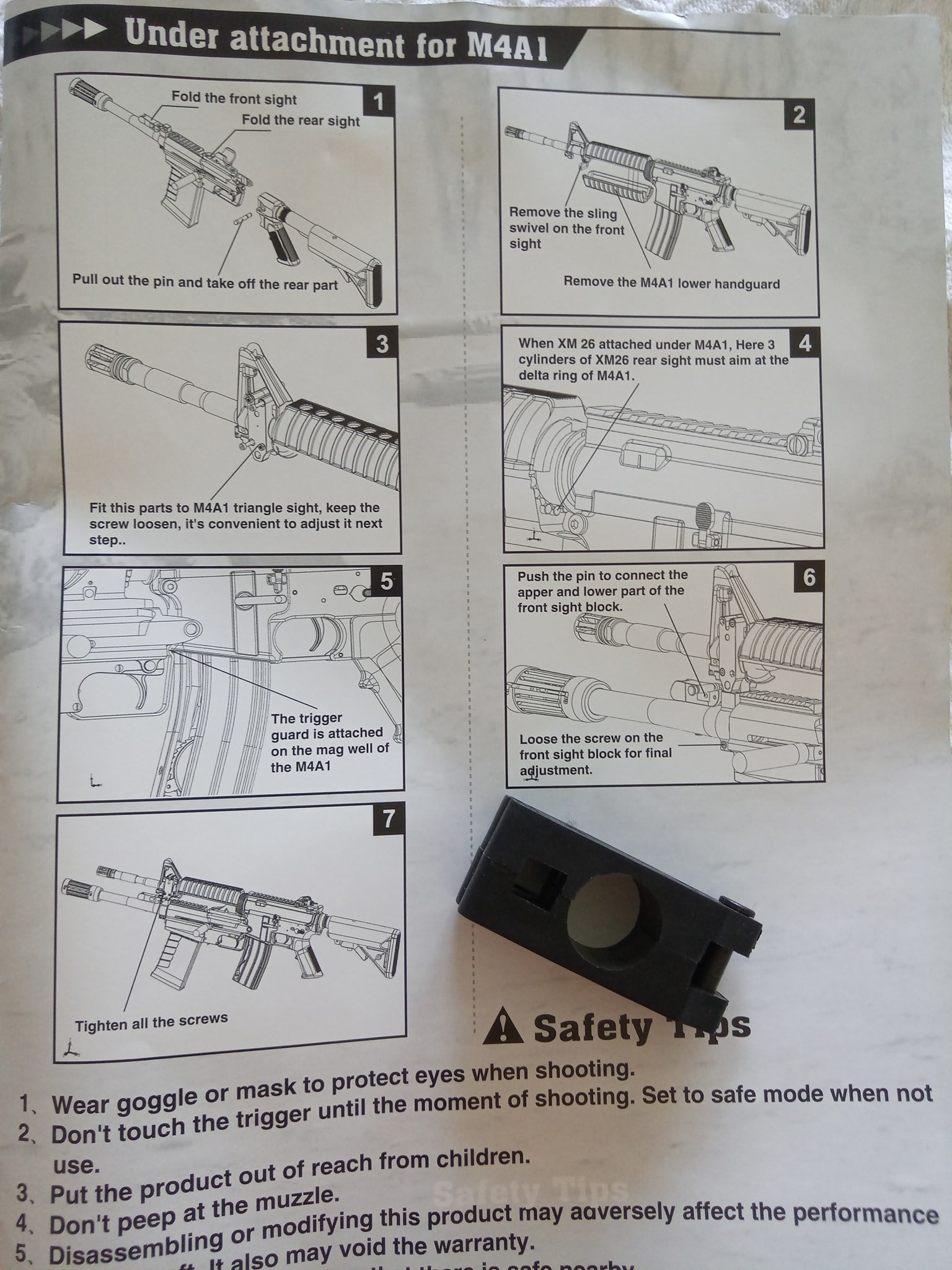M4-ekre szépen felszerelhető volt, ami mocsokosul szép látványt hozott, sajnos erről fényképem nincsen. Ekkor különösen kijött az, hogy a fegyver anyaghasználata miatti könnyű XM-26 nem tette nagyon élhetetlenné az átépítést. Sok értelme nem volt, de látványelemnek és az ellenfél elrettentésére király volt.