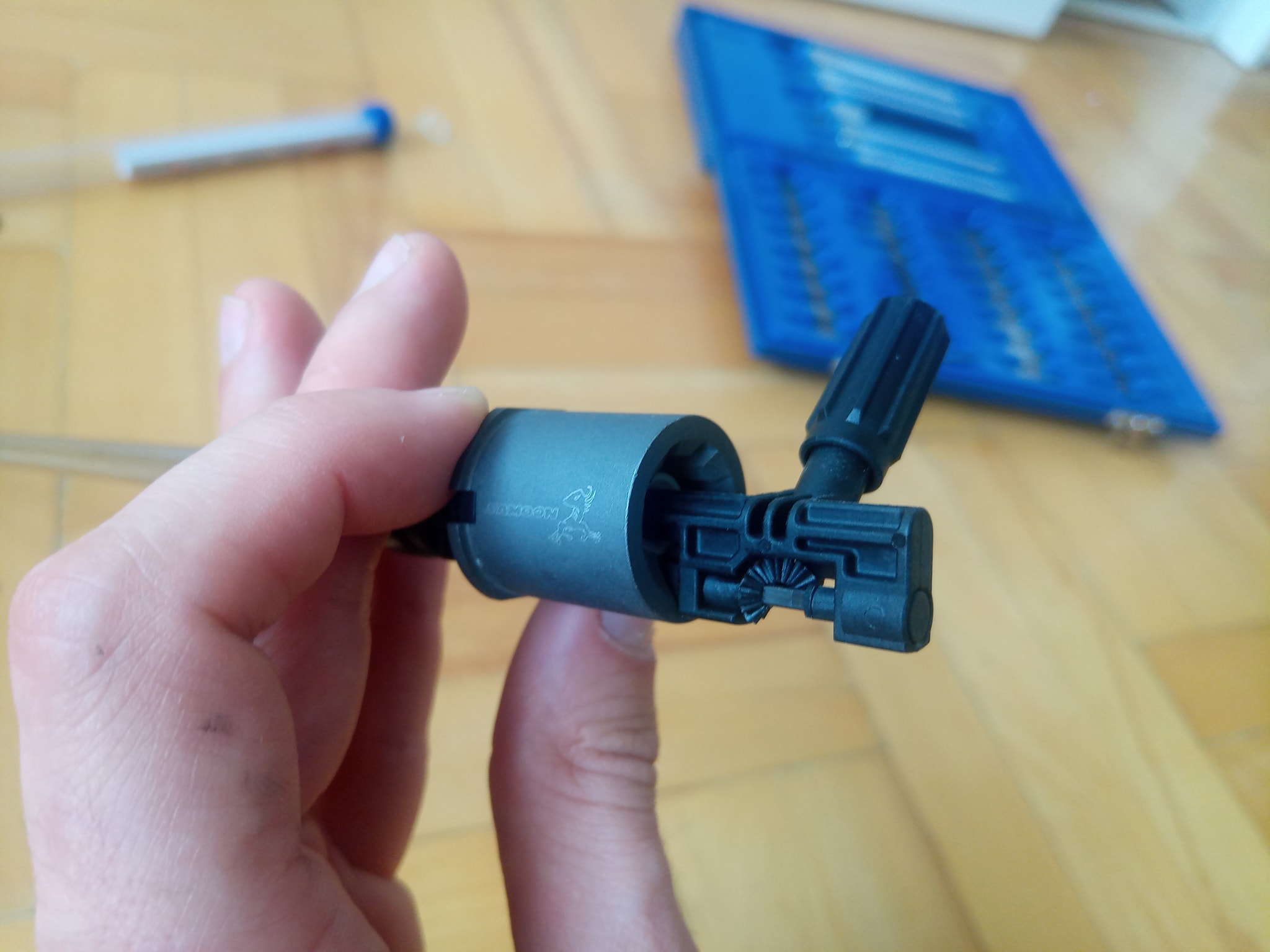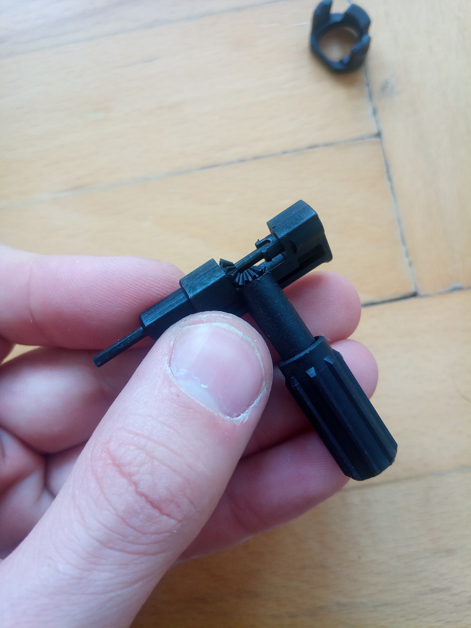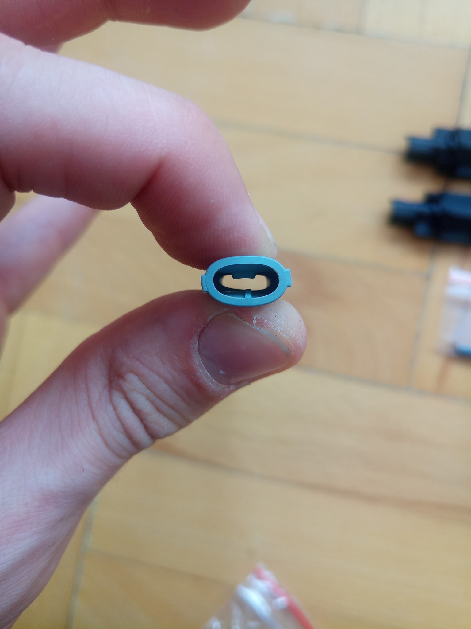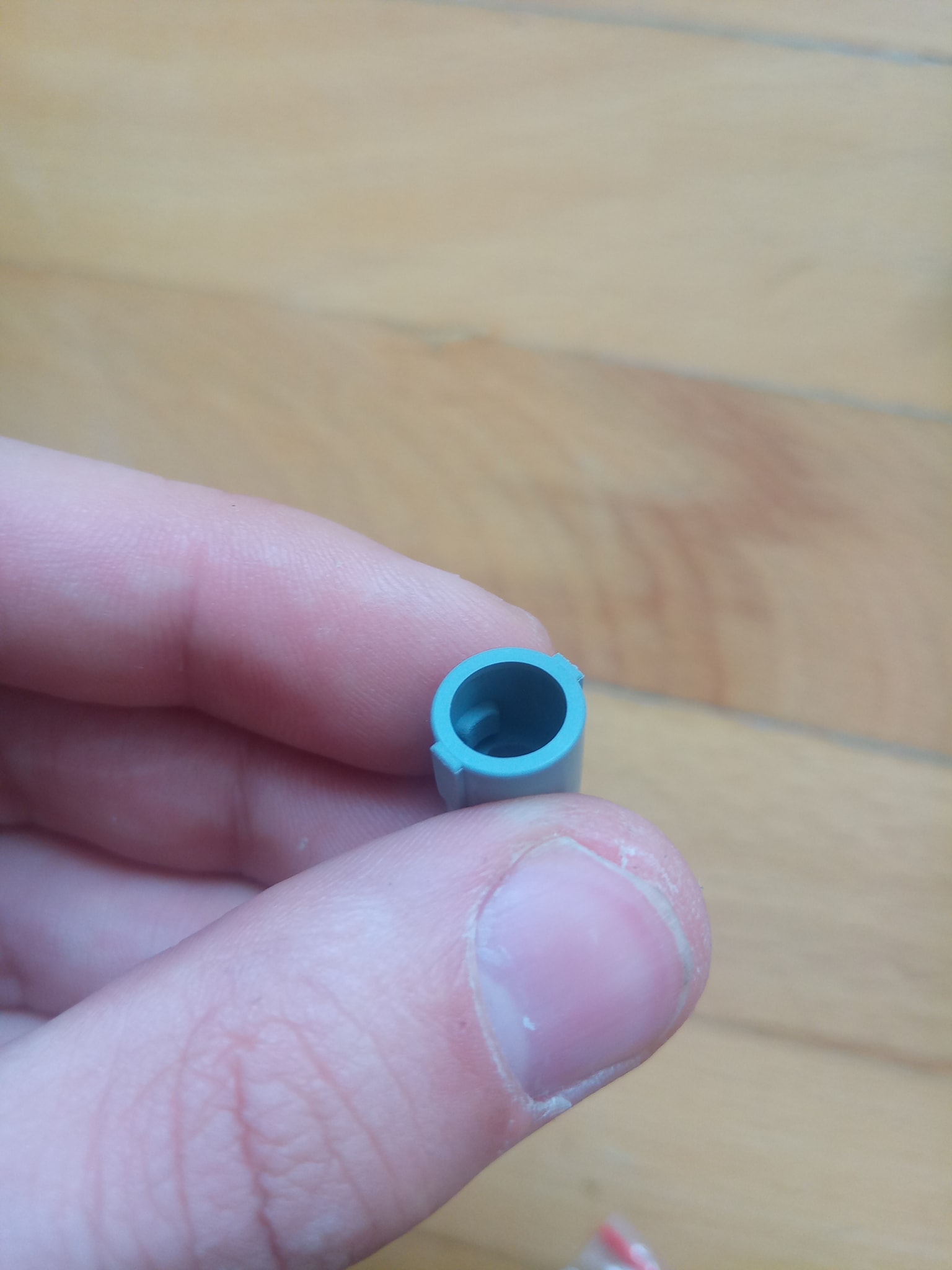 Az első megjegyzés, hogy az összes műanyag alkatrész rendesen tartalmaz sorját. Ezek a sorják javarészt a szerszám illeszkedés mentén találhatóak meg. Ezek felesleges anyagok, vékony hártya vagy el nem távolított anyagot jelentenek. Habár ezek illeszkedési hibát vagy működési hibát nem okoznak, késsel és csiszpapírral el szoktam távolítani - sose lehet tudni alapon. A lenyomó egy darabból készült, belső része üreges és kikönnyítést kapott - várhatóan azért, hogy a fröccsöntés után ne deformálódjon annyira.
