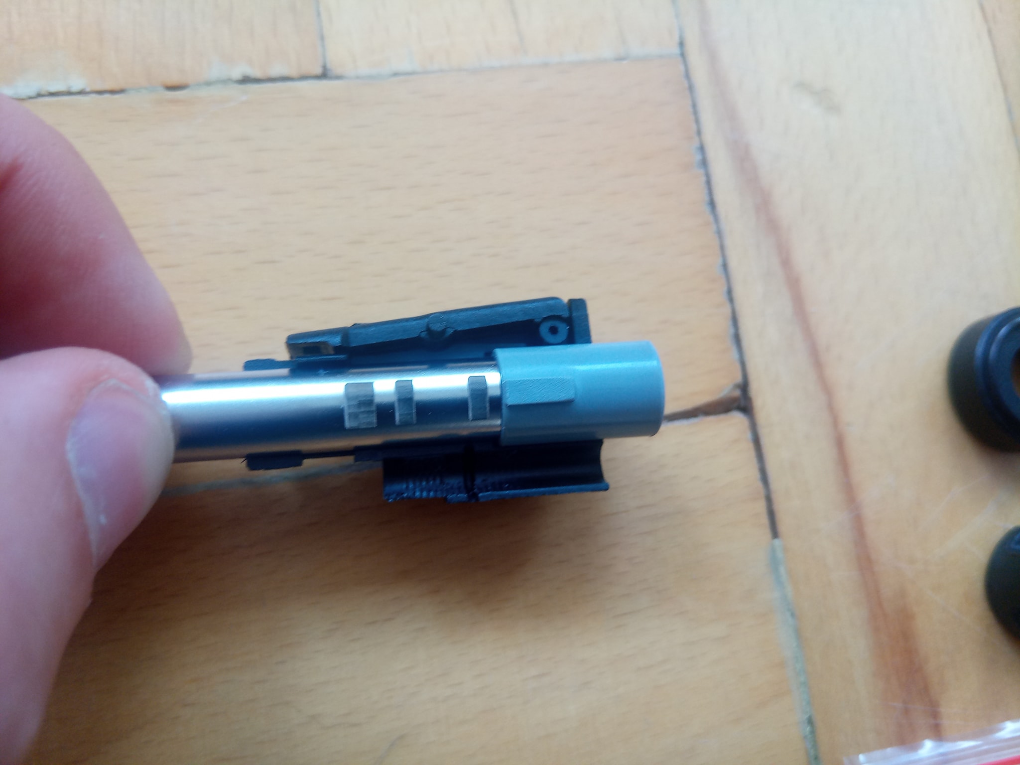 Az összeszerelt hop egységet kicsit nehéz volt a csőfarba beszerelni - amely egy acél Samoon-féle volt. A csőfarba enyhén erőltetni kellett a kamrát. Főleg azért is, mert feszül a hop gumi miatt a kamra a csőfarban. Kivenni szép kihívás lesz, ha később javítani vagy cserélni kell valamit.