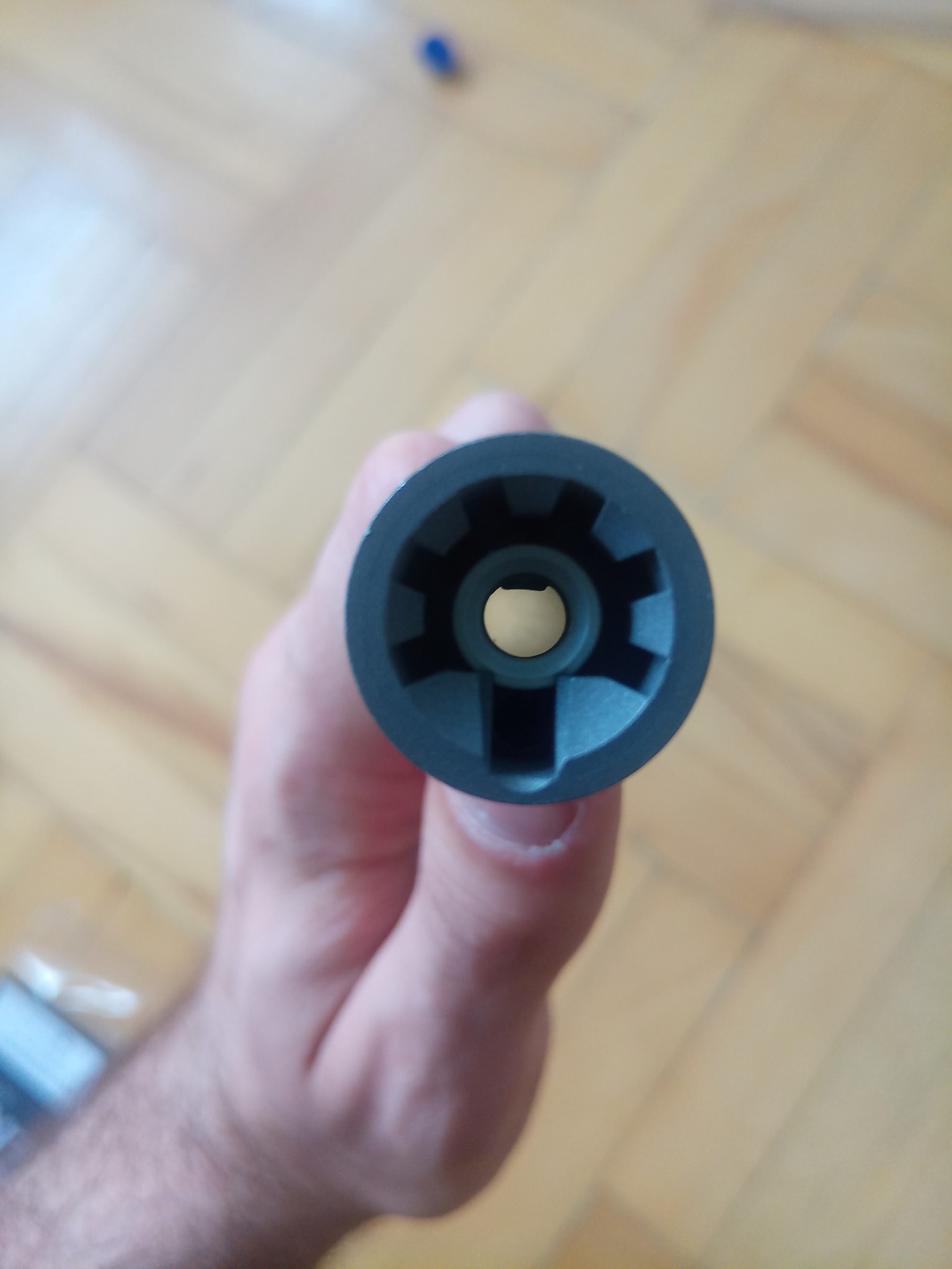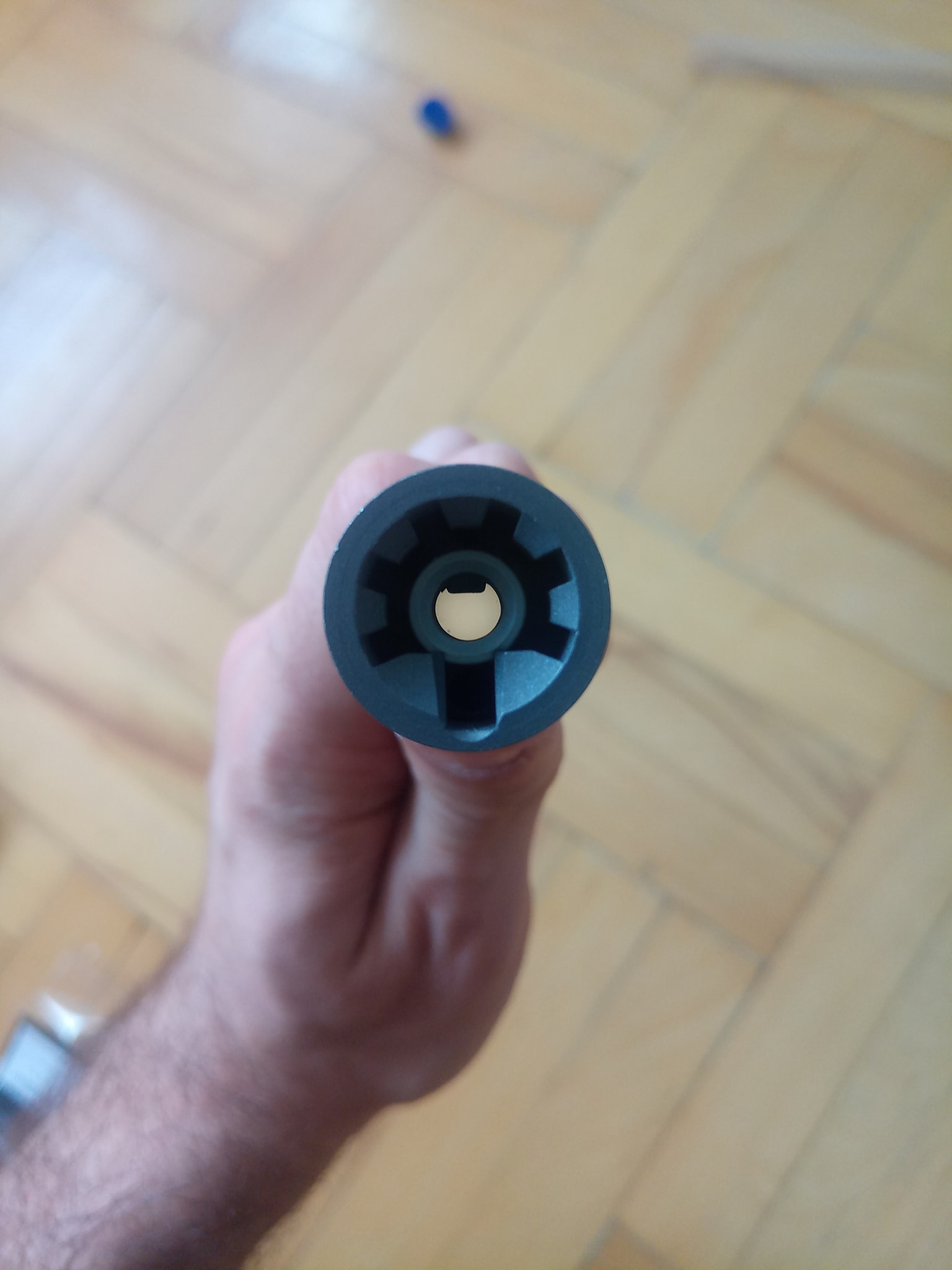 Lenyomó szintén AEG verzióhoz hasonló, némileg magasabb, vaskosabb. A gumi hiába nyúlik be a tokba, a nozival jól tömít,. Viszont a kontakt a gumi és nózi között mégsem olyan erős - nem fogja meg azt, így a nózi azonnal a zárkerettel hátrajön, csomó gáz megy feleslegsbe így. A száraz tesztek során megfigyelve max álláson szerintem nincs BB, amit ne tekerne meg. A lenyomót cseréltem, mert oldalra is sokat mondulhat el, illetve a gyári, nagy furattal rendelkező lenyomót nem éreztem elég stabilnak - tömör, gumilenyomók fényévekkel konzisztensebb élményt adnak.