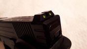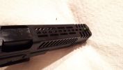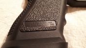 Különböző külsejű verziók közül nekem a D verzió tetszett a legjobban. Teljesen cnc mart aluminíum szánja futurisztikus, tégla/kocka formája szanászét könnyítve. Sokak számára nagyon féltégla megjelenésű, ami nekem kifejezetten be is jött. A megmunkálás egészen szép lett, habár pár helyen felfedezhető - leghangsúlyosabban a hüvelykivető nyílás oldalfala látványos. Minden más felület tükörsima, szép feketére eloxálva. Azt viszont erősen meg kell jegyezni, hogy minden megmunkált él durva, éles, szószerint vágja a kezet. A külső cső jó hosszú, ahogy az egész szán méretes. Tetszetős, hogy a külső cső is teljesen CNC-munkált, torkolatban szépen eldolgozták a végét - eléggé látványos azt meg kell hagyni. A külső cső és szán találkozása pontos, jól illesztett és jellegzetes fémes csattogó hangot ad, imádom használat közben a hangját. Ezen túl a pisztoly tokja is szép lett. Eleve ez az első kiadás, ami a hátsó szánvezető/elsütőház csavarjánál rézperselyes és nem műanyag csavart használnak a tokba betekerve. Sokkal stabilabb és tartósabb a sima Marui-féle megoldáshoz képest - más gyártók is tehetnének így. A tok egészen fényes műanyagból készült, markolat textúrája nem kifejezetten erős, durva, jól érezhető. A feliratok gyönyörűen vannak fröccsöntve, sokat dobnak a látványon. Fura, hogy a tok nem teljesen párhuzamos - az orra lefelé lejt, nem egyenes. Ez nekem később a szánvezetők cseréje során derült ki és okozott plusz munkát. A tokra illesztett hattyúnyák is jól illeszkedik, kényelmes és ténylegesen hozzátesz a pisztolyhoz. Ahogy a tártölcsér is jól működik, habár kissé mozog. Normál méretű szánakasztó van a pisztolyon, miközben a G34 egyik sajátja az enyhén növelt kialakítású megoldás. Elsütőbillentyűben megtalálható a típusra jellegzetes biztosítás, amely határozottan és jól működik szerencsére. A Marui ötlete alapján betervezett rejtett biztosító is megtalálható, amely a tok aljában található szériaszám elcsúsztatásával működik. Tárkioldó műanyag, rugója kellően erős és a kioldó kikopásáig biztosan jól működik majd. Irányzékok zöldre színezett, kellően hangsúlyos célgömbökkel szereltek - semmi extra, teszik a dolgukat.