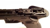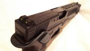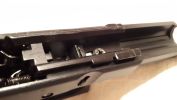 Bentebb haladva a szánban még nincs változás, egyezik minden az R17-tel. Gumitalpas, átalogs erősségű rugóval szerelt helyretolónk van. Teljesen átlagos, fejlesztésre szoruló hopup egységünk - gagyi rézcső, Marui-like puha és vacak hop gumi, standard állítótárcsa, alapból ferde és gyengeanyagú lenyomólemez. A nózi továbbra is az Armytól megszokott kidolgozású, enyhén rugalmas műanyag. Meglepően jól működnek, de manapság ezek belső szelepe erősen sorjás és hajlamos megszorulni - emiatt lefújja az összes gázt a csőtorkolaton keresztül. BBU gyorsan elhasználódik, főleg a kakas által megütött kontaktterület mentén. Ráadásul a CNC-mart szánt picit elméretezték, a BBU és szán között lényeges rés található, emiatt ide az elsütőrudazat szeret beakadni és az egész szánt emiatt elakadhat. Nekem az elsütőrudazatot cserélni is kellett egy szélesebb, vastagabb kialakítású példányar - emlékre GunsModify került be. Amit hiányolok, az a szán ütközés csillapítása. A gumi betét nem elegendő, amire a WE szépen kijavított. WE Glock-ok esetén egy műanyag betét kerül beépítésre, ami jól működik - ellenben az APS gumirugós megoldása folyamatos gumirugó cserére késztet annak túlterhelése miatt. Nos, az Army esetén egy gumilap kerül beépítésre a szán elejébe, ami használat során egyértelműen elégtelennek láttam. A szánvezetőt sajnos a szán deformálja, ahogy üti az elejét. Ezt a deformáció folyamatos ellenőrzést követel - mivel a deformáció érinthető a szán belső szánvezetőjét és akadhat a szán emiatt -, korrekció és reszelés kellhet. Emiatt én az egész szánvezetőt cseréltem acélra, amelyből a Guarder nagyon nem volt jó választás. Méretproblémába ütköztem, amelyet nem kevés csiszpapír és idő felhasználásával tudtam javítani.